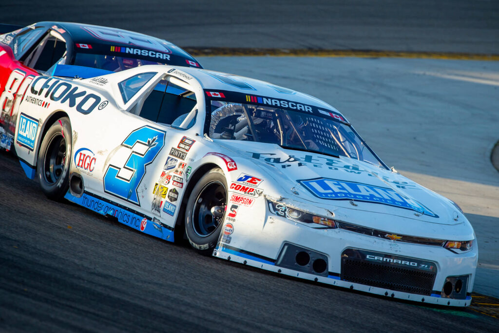 Despite an early setback due to a pit road speeding penalty, Bell and the #3 team remained composed. With quick, strategic pit stops and consistent pace, Bell clawed his way back through the field. In the closing laps, he took the lead and never looked back. His first win in the NASCAR Canada Series and the inaugural race at Calabogie Motorsports Park.